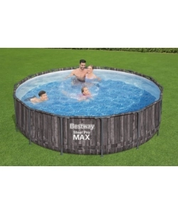 Piscina fuori terra con struttura rotonda bestway "steel pro max" effetto legno scuro 427x427x107 cm