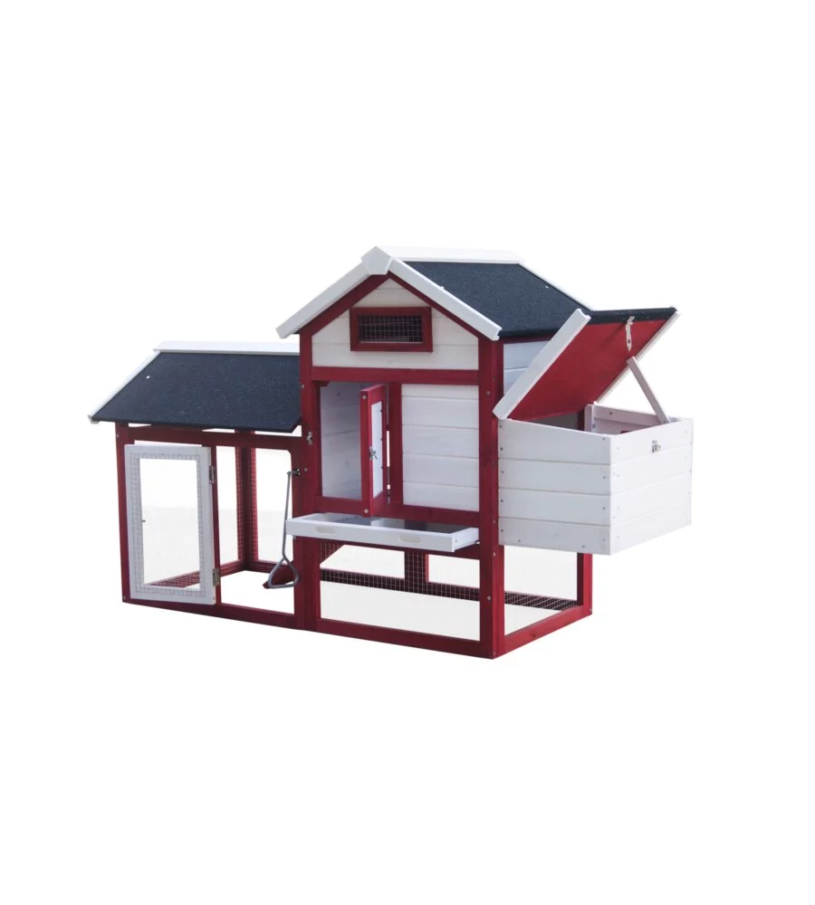 Casetta pollaio per galline in legno Habrita "PO 1562" rosso e bianco 152x62x92 cm.