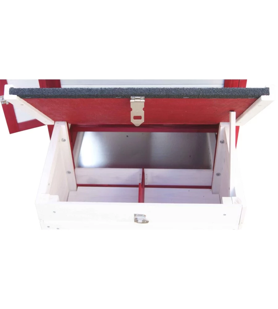 Il pollaio rosso e bianco è ideale per ospitare 2-3 animali, offrendo loro comfort e sicurezza. La struttura è realizzata in legno di abete con pareti di 10 mm di spessore e una certificazione FSC 100%, garanzia di sostenibilità. È dotato di uno spazio giorno grigliato, uno spazio notte e un posatoio, fornendo un ambiente ben organizzato per gli animali. La griglia zincata ha una maglia da 10 x 10 mm, assicurando ventilazione e protezione. Il tetto in carta bitumata scura offre riparo dagli agenti atmosferici.