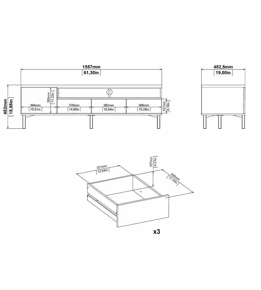 Mobile tv bianco e legno con 1 anta e 3 cassetti, 156x48x48 cm