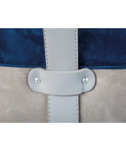 Pouf blu e grigio con maniglia in ecopelle, 38x32,5x43 cm