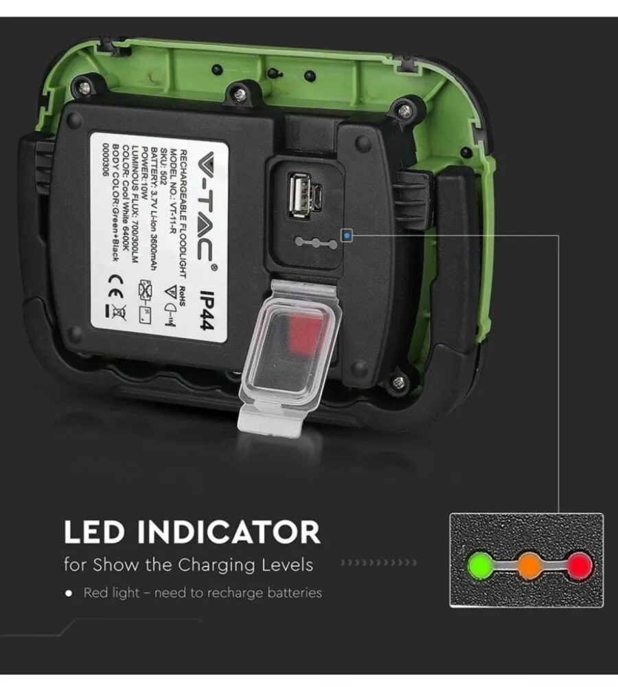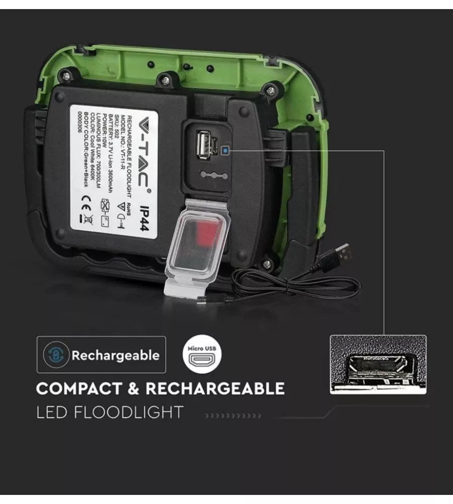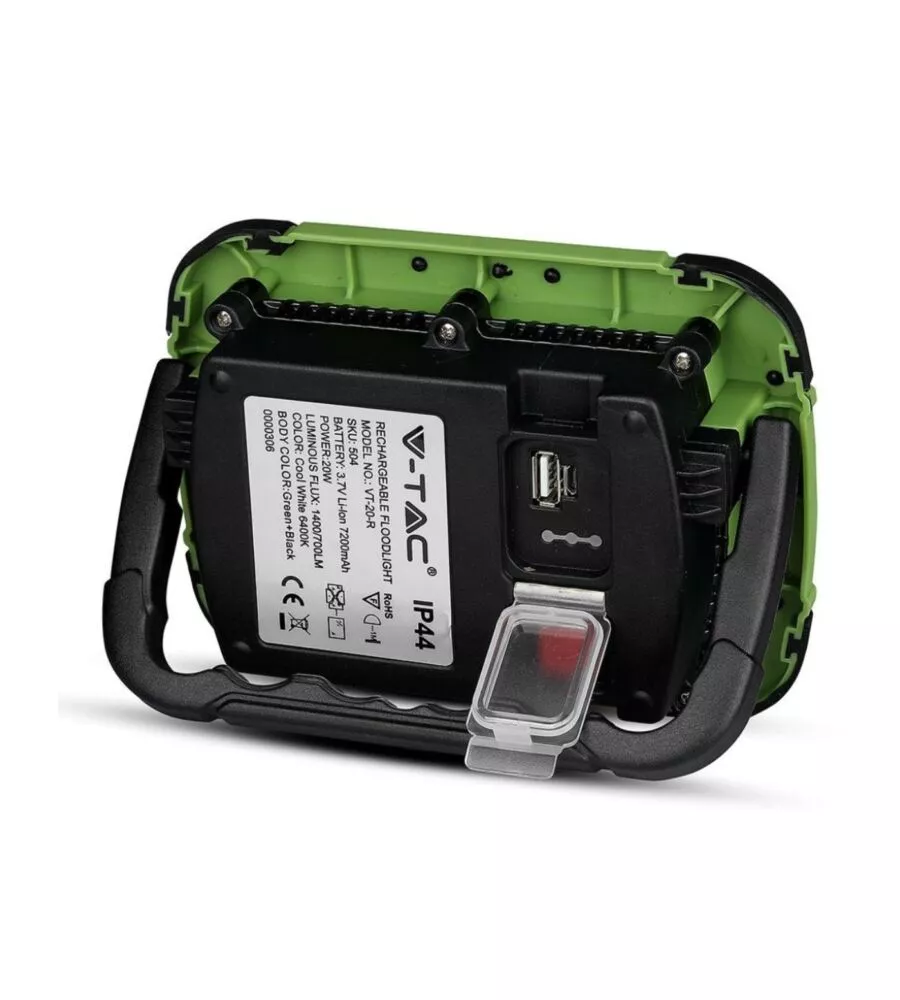 Faro led ricaricabile vtac con sos flash verde 4000k 20w