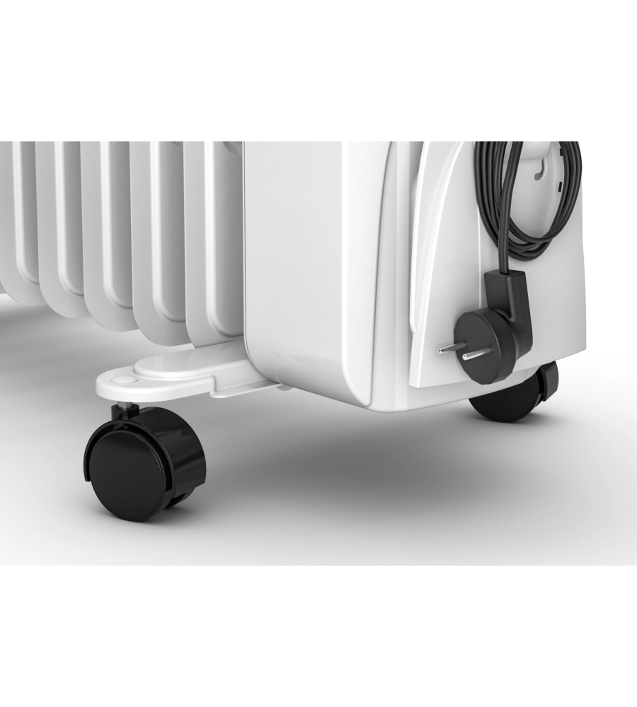 Per una maggiore praticità, il radiatore è equipaggiato con ruote per facilitarne il trasporto e un avvolgicavo che permette di conservare il cavo in modo ordinato. Il radiatore ad olio "Caldorad Humi 9" è una scelta ideale per chi cerca un riscaldamento efficiente e funzionale, arricchito da pratiche caratteristiche aggiuntive.