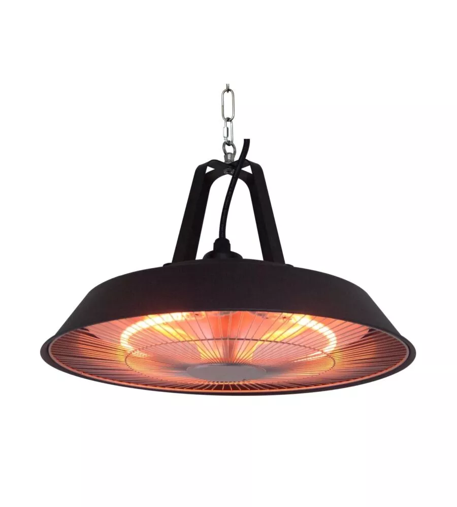 Lampada ad infrarossi riscaldante a sospensione con potenza 1500 W ideale da appendere al soffitto, tramite una semplice e facile installazione con catena e ganci forniti. Presenta un design decorativo e un'alta efficienza termica. Può essere utilizzato sia all'interno che all'esterno, è capace di riscaldare fino a 12 mq. Sicuro e rispettoso dell'ambiente, non produce CO2 ed ha un grado di protezione IP 34. Protetto da dispositivo di sicurezza per la protezione da surriscaldamento. Grazie alla lampada alogena ad infrarossi, il riscaldamento è immediato tramite il pulsante On/Off. Il riscaldatore a sospensione misura 42,5x42,5x17,8 cm e pesa 1,8 kg. Inoltre ha una garanzia di 2 anni.