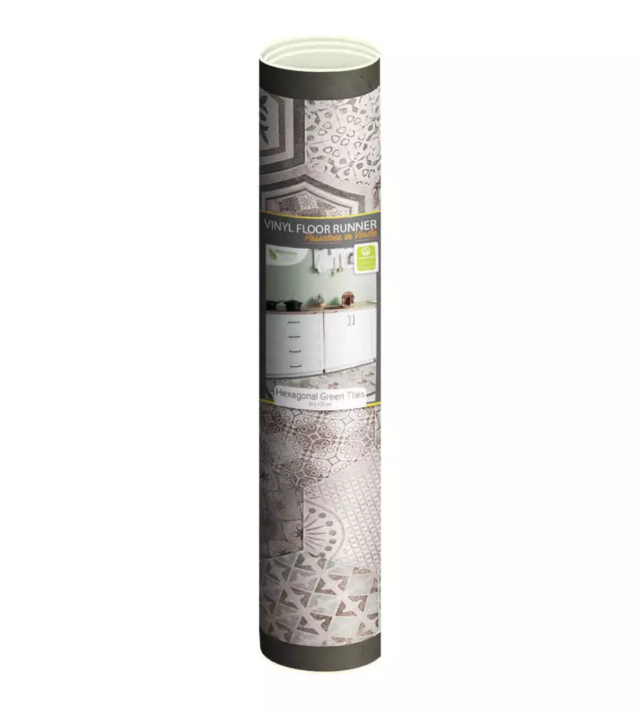 Passatoia in vinile "runner" fantasia "hexagonal green tiles", 120x50 cm