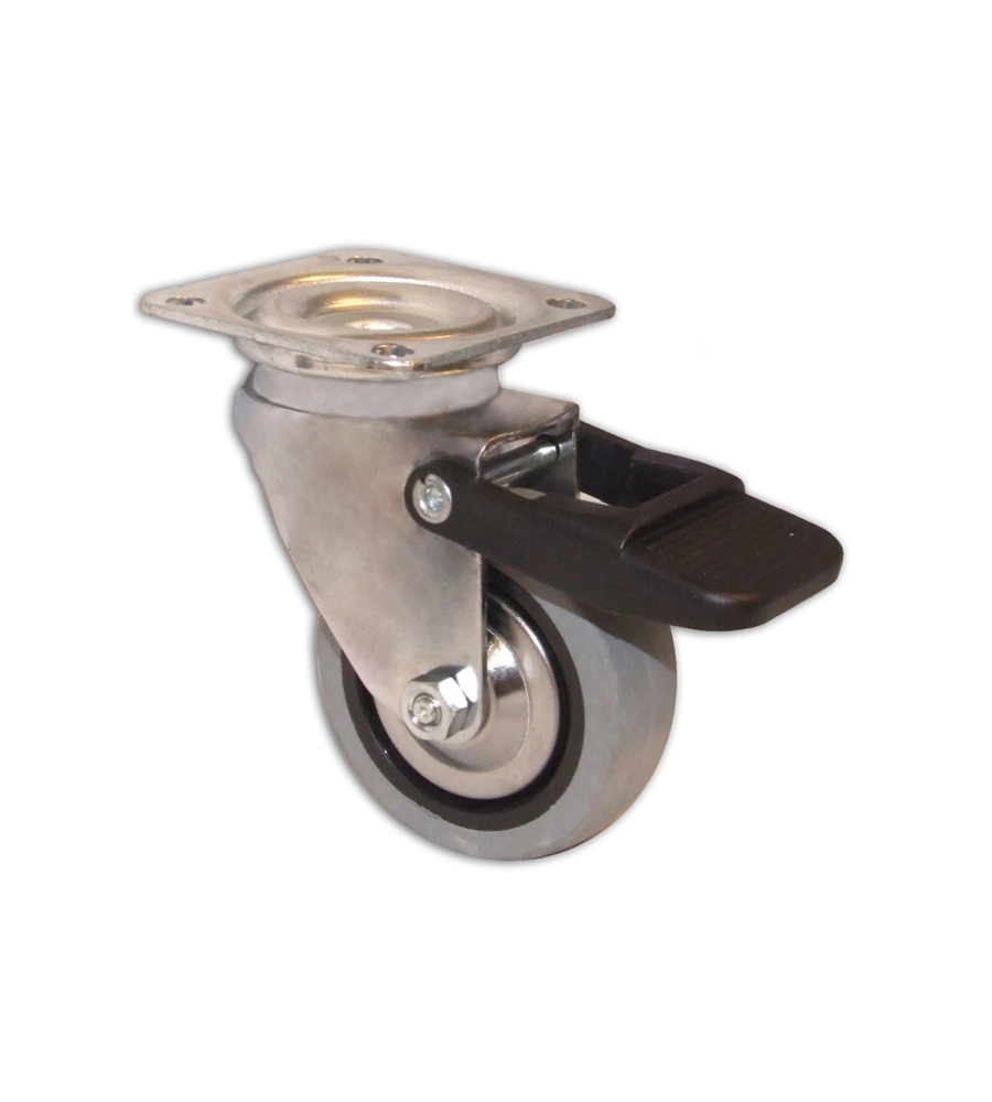 Ruota piroettante in gomma con freno ø 60 mm. con piastra