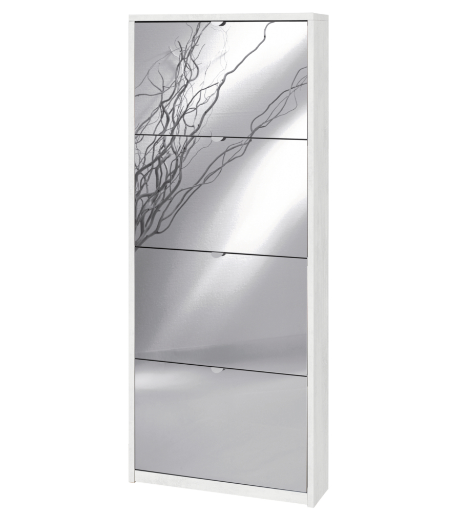 Scarpiera bianca con 4 ante a specchio, 63x18x154 cm