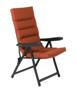 Schienale reclinabile 5 posizioni, cuscino poggiatesta imbottito.