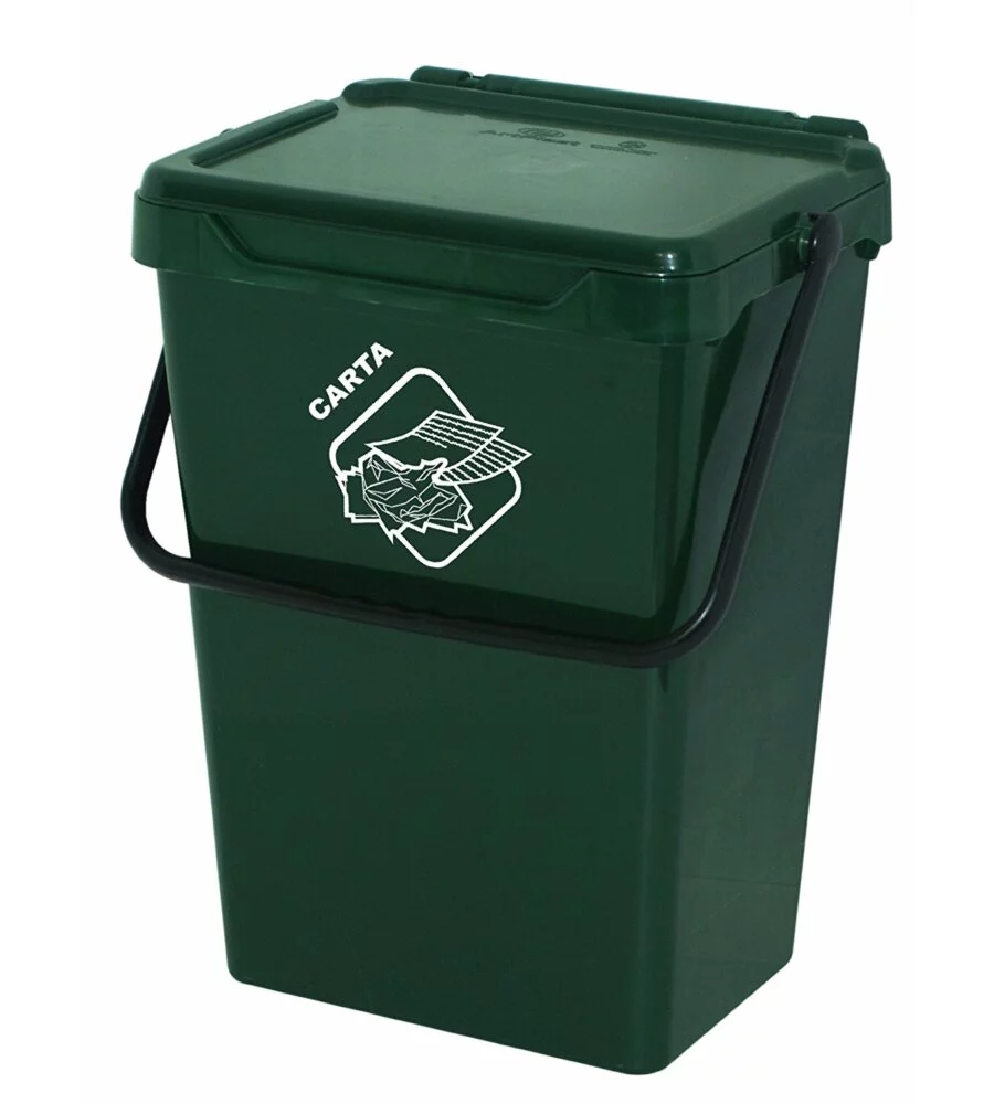 Cassonetto in plastica con coperchio per raccolta differenziata - verde da 35 litri.