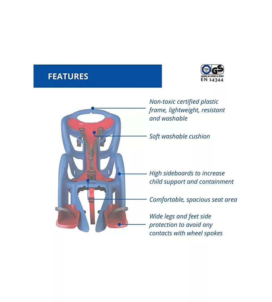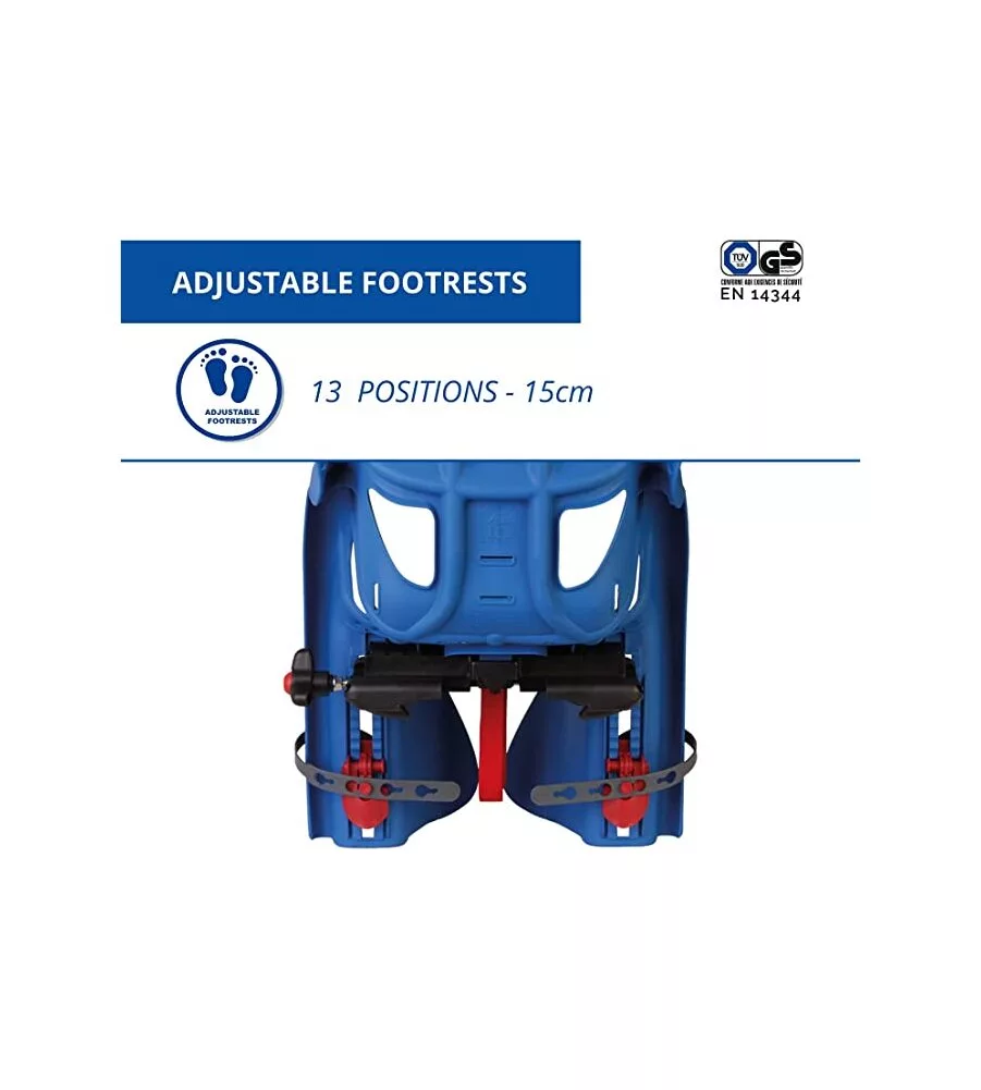 Seggiolino posteriore blu per bicicletta per bambini, max. 22 kg, da 3 a 8 anni - si fissa al portapacchi