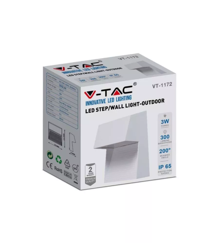 Faretto led segnapasso a plafone da esterno quadrato vtac bianco 4000k
