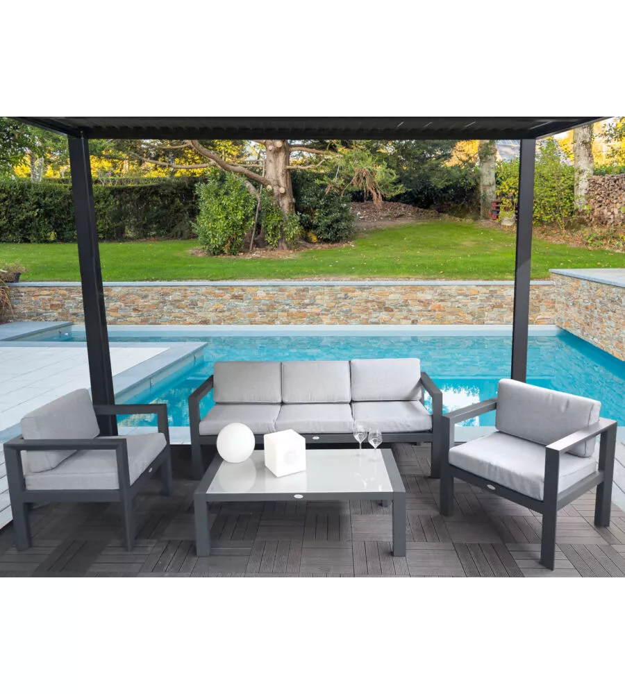 Set da giardino riviera "hibiscus" in alluminio antracite e grigio chiaro, 5 sedute e un tavolino