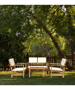 Set da giardino eurogarden "sassari" in legno con cuscini beige 4 sedute e tavolino