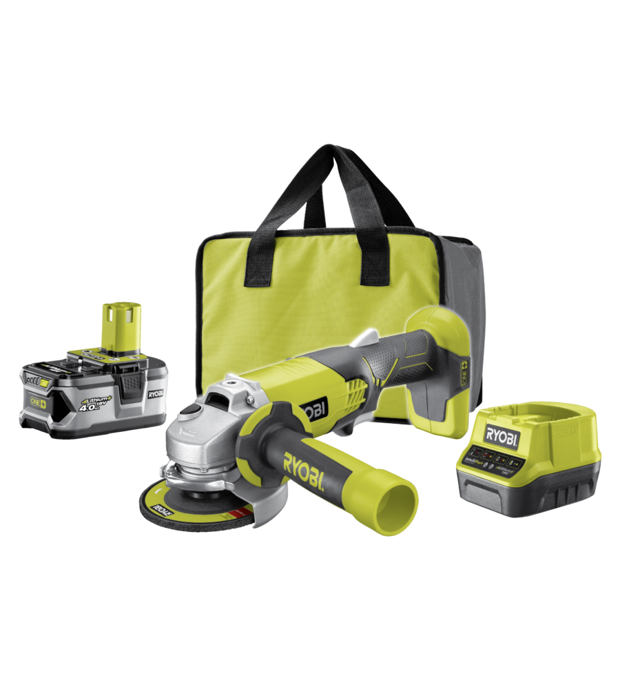 Smerigliatrice a batteria ryobi "r18ag-140s" 18v 115mm, con batteria 4.0 ah e caricabatterie - ricevi buoni edenred dal valore di 40 euro