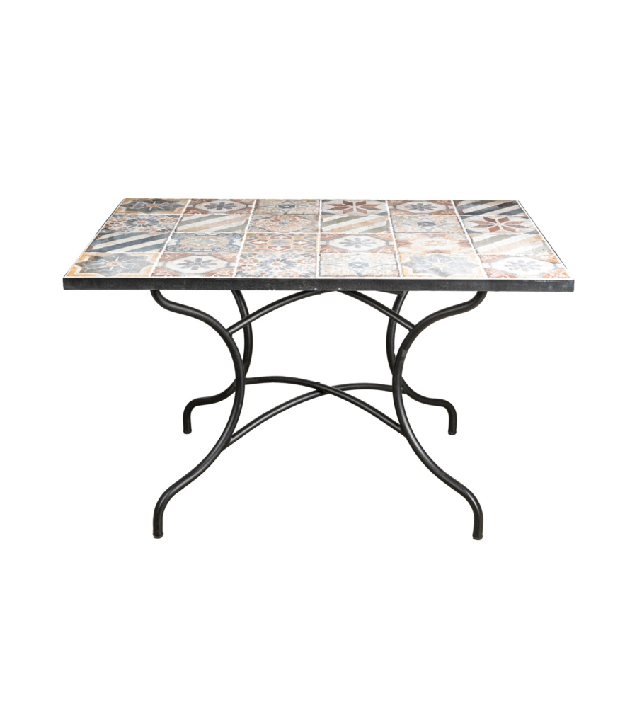 Tavolo da esterno eurogarden "pompei" in ferro con top piastrelle gres 120x80x75 cm